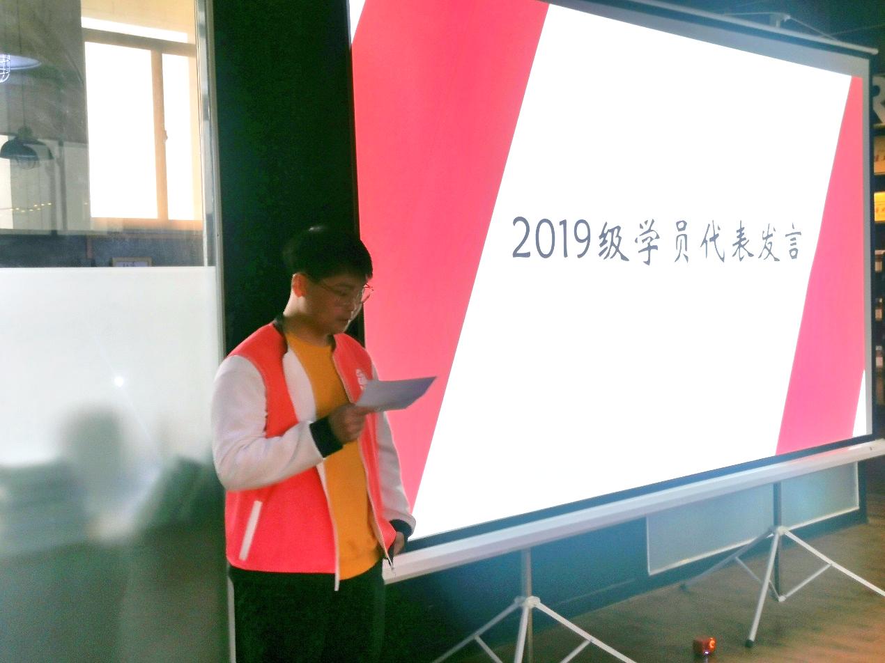 2019级学员代表彭瀚雳同学分享了在“壹系壹班”一年多的学习收获和实践经历。他说,“希望学弟学妹们都能完成从‘大佬竟在我身边’到‘大佬竟是我自己’的蜕变”。