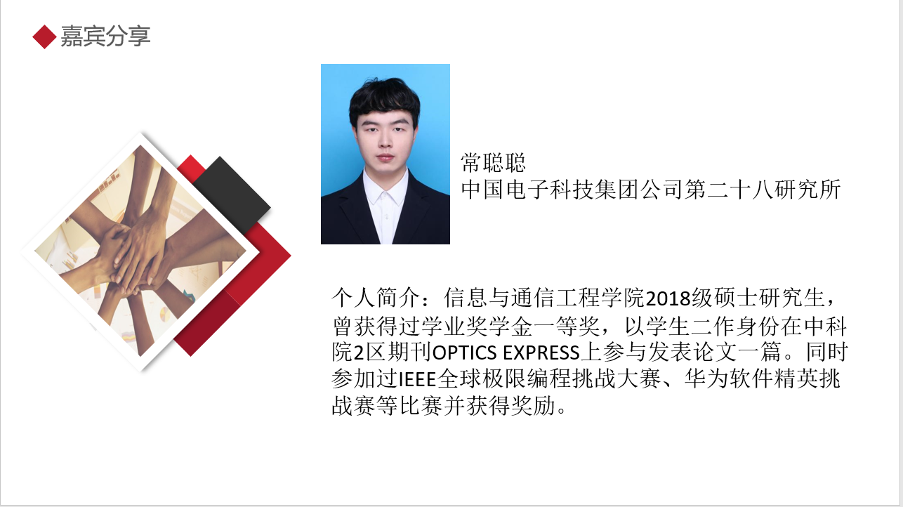 常聪聪师兄对如何获取招聘信息,二十八所的面试流程,以及面试相关准备做了详细介绍,也给了想要去研究所工作的同学们一些建议。