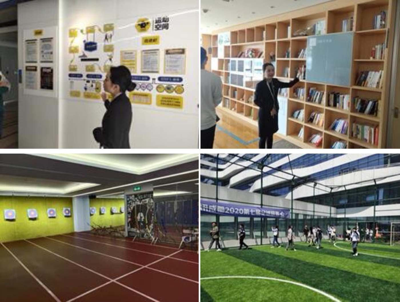 随后同学们跟随讲解员来到员工的运动休闲区,这里不仅配备健身房、羽毛球馆、射箭馆、舞蹈室,还有中医理疗馆。在这个过程中同学们也见到了26间15种不同风格的茶水间和以所在地天府三街198号命名的198号书社,感受到了丰富的企业文化。