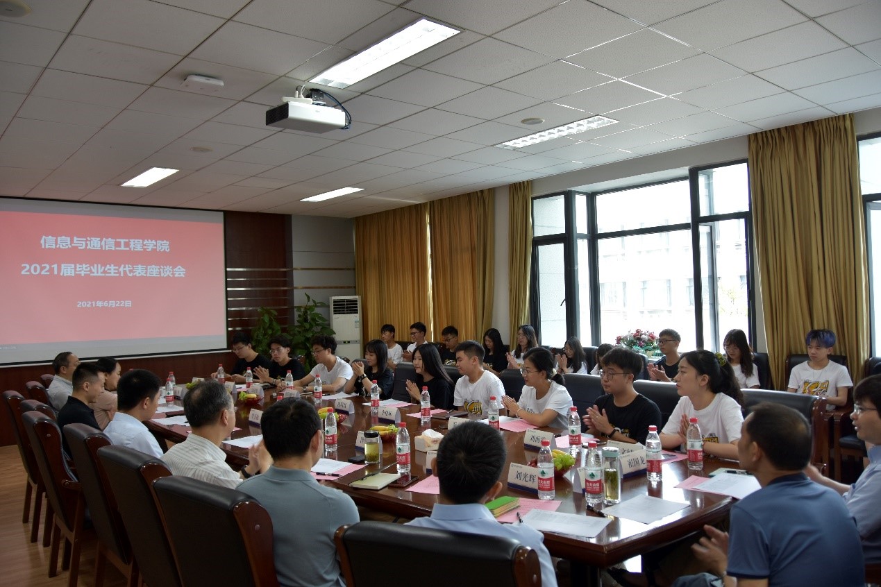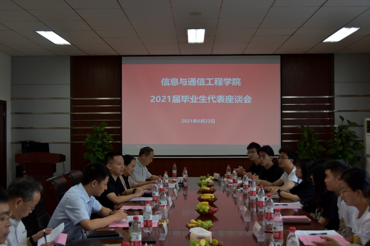 6月22日上午,太阳成集团tyc151cc2021届毕业生代表座谈会在清水河校区举行,公司全体院领导、班主任代表、兼职辅导员以及三十余位毕业生代表参与了座谈。会议由公司党委副书记黄海主持。
