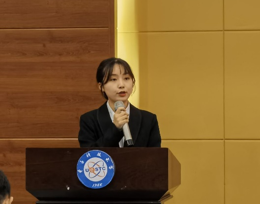大会第四项,由第五届信通研会部员代表罗惠文发言。罗惠文同学代表研会全体成员向公司领导及各位老师、同学承诺:做好研会的基本工作及内部沟通、发扬研会团结奋进优良传统、了解同学们的需求,推陈出新,为研会发展注入不竭动力。