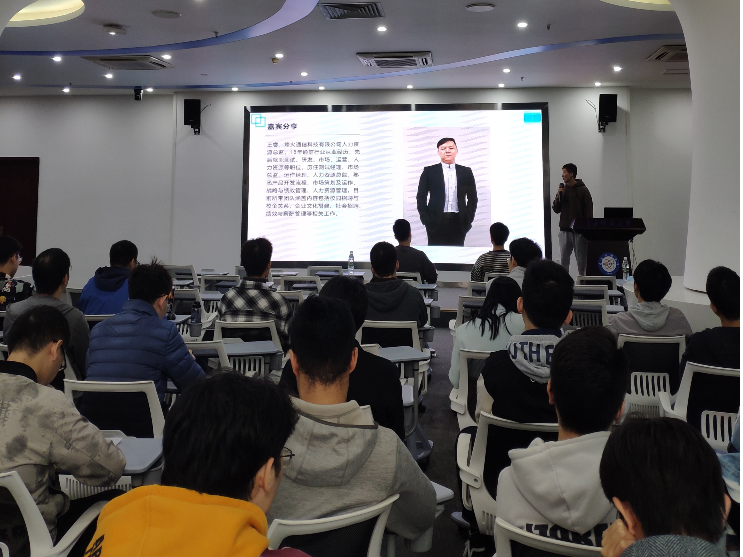 2021年10月20日,太阳成集团tyc151cc研究生职业发展中心在图书馆二楼百学堂成功举办“HR面对面”就业分享会的第一场,活动旨在给予员工切实的就业指导,引领员工做好自己的职业规划。本次分享会邀请到了烽火通信科技股份有限公司网络产出线人力资源总监王睿老师,他具有18年通信行业从业经历,先后就职测试、研发、市场、运营、人力资源等职位,历任测试经理、市场总监、运作经理、人力资源总监,熟悉产品开发流程、市场策划及运作、战略与绩效管理、人力资源管理。目前所带团队涵盖内容包括校园招聘与校企关系,企业文化搭建、社会招聘、绩效与薪酬管理等相关工作。