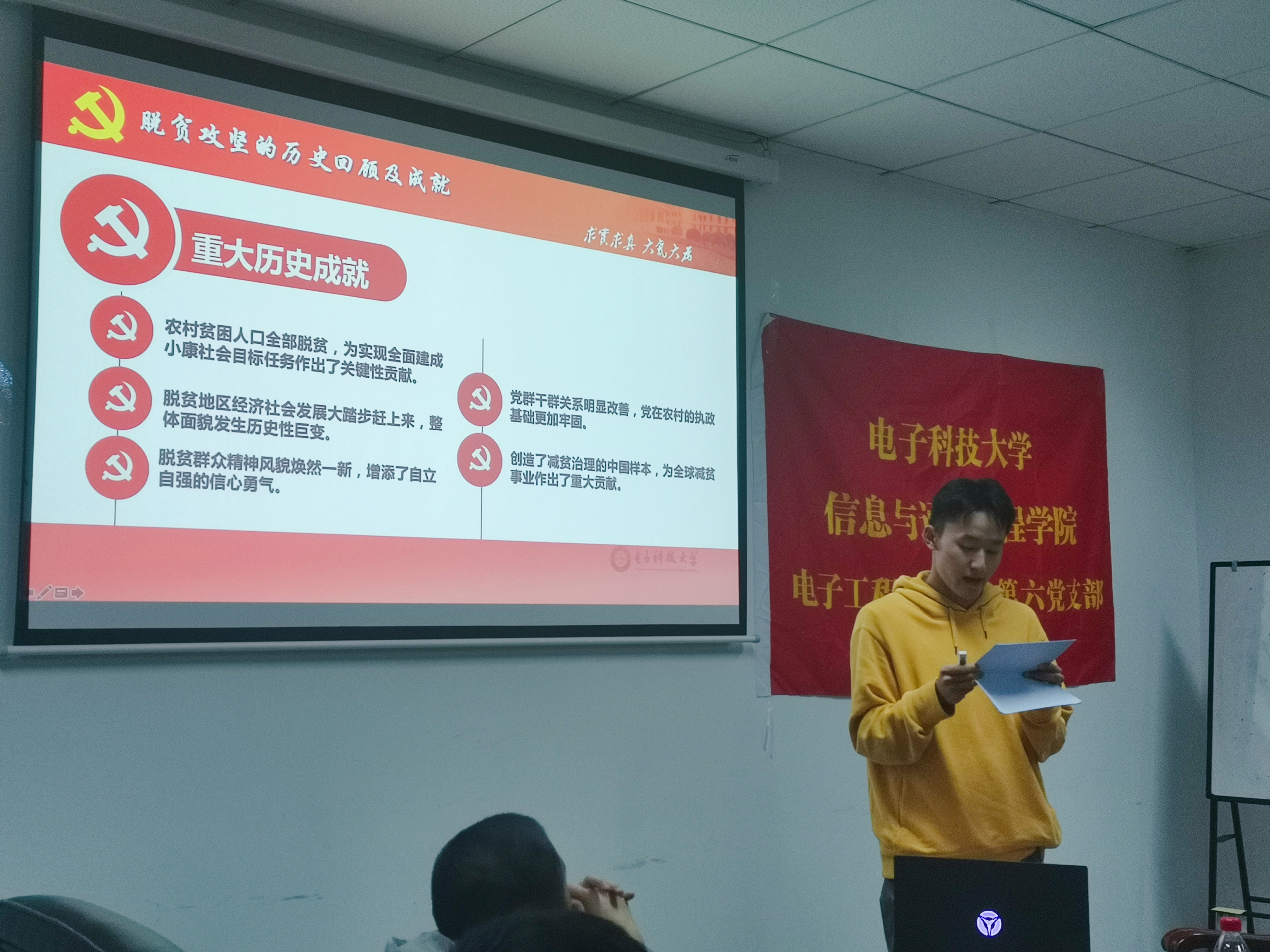 为了让支部成员学习脱贫攻坚战的精神,认识党和国家的乡村振兴工作,在心中种下为祖国挥洒青春汗水的种子,2021年10月25日,电子工程系研究生第六党支部于科b220会议室召开了“乡村振兴”主题党日活动。本次活动同时邀请了辅导员雷蕾老师和校研究生宣讲团薛明武同志。