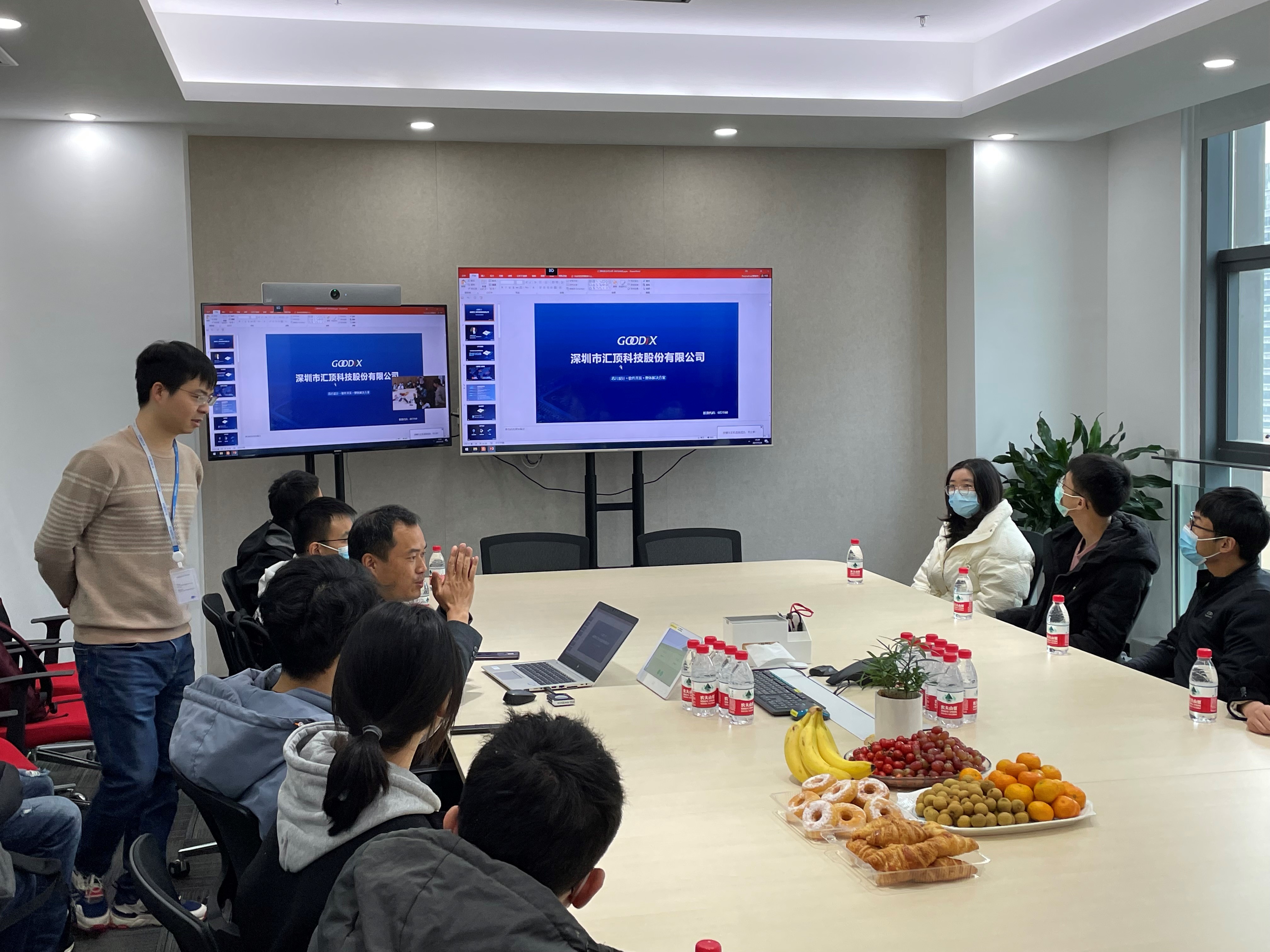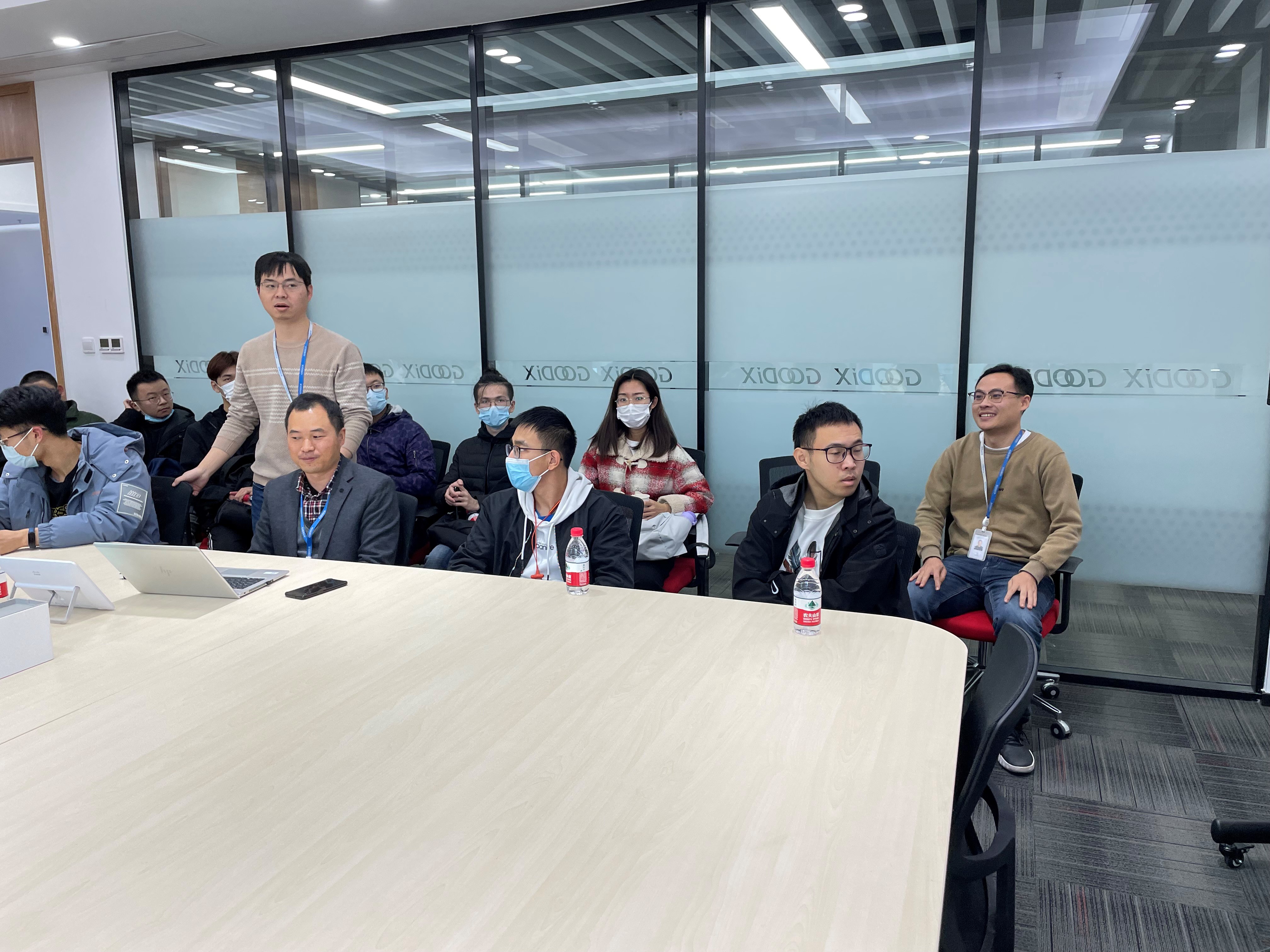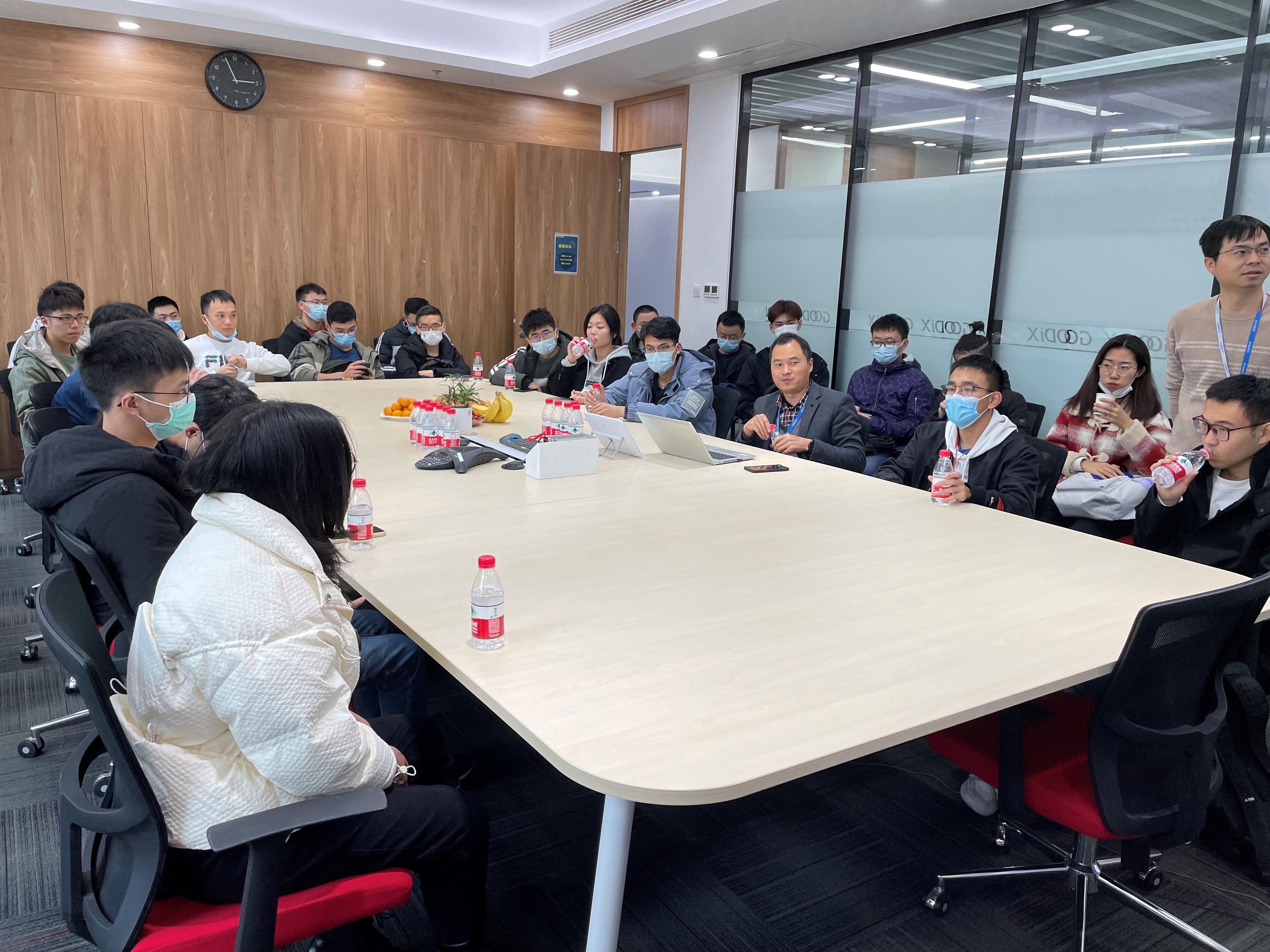 参观环节结束后,大家来到会议室与公司领导和员工交流。公司负责蓝牙与物联网产品线的产品经理邹景华向同学们介绍公司的基本情况。