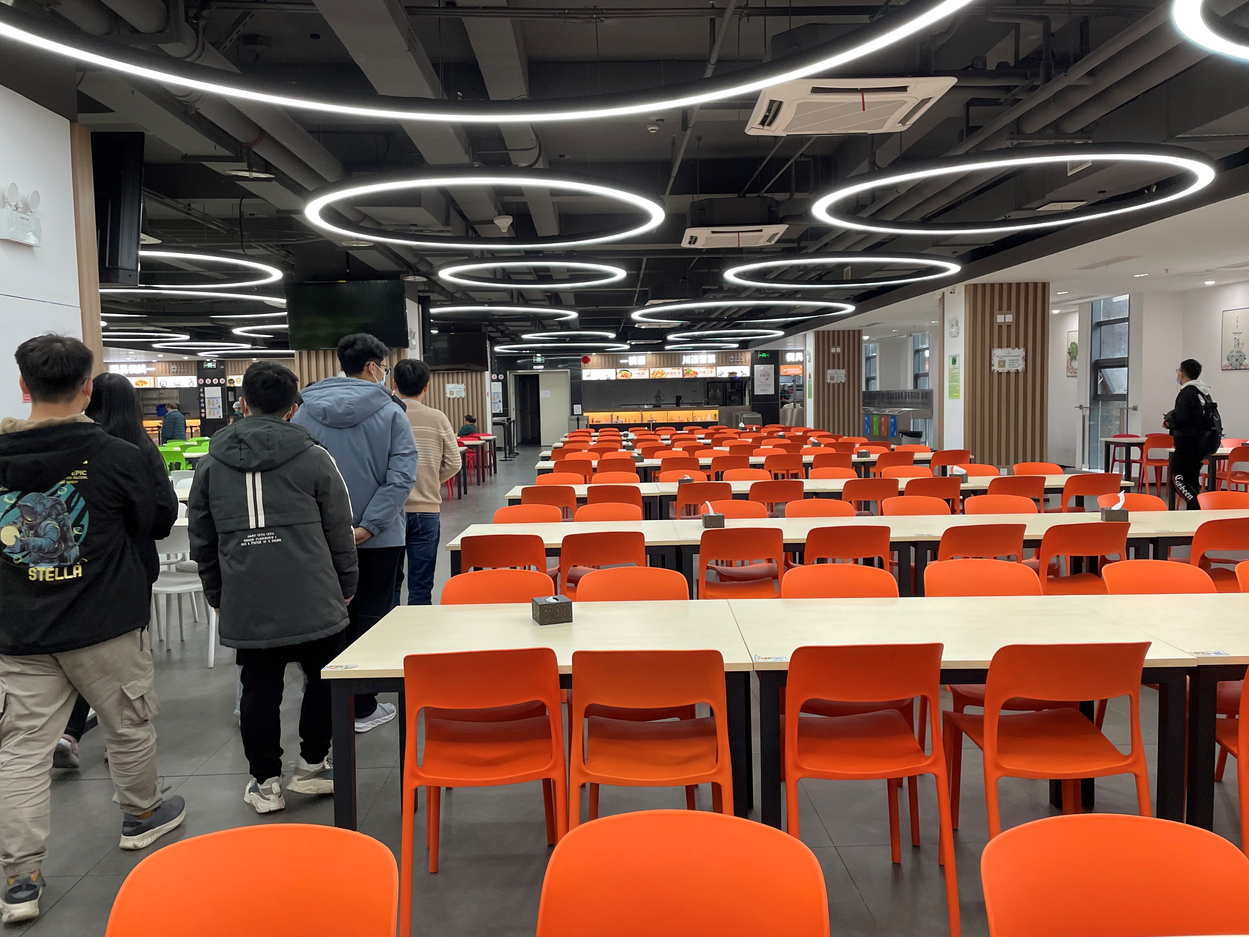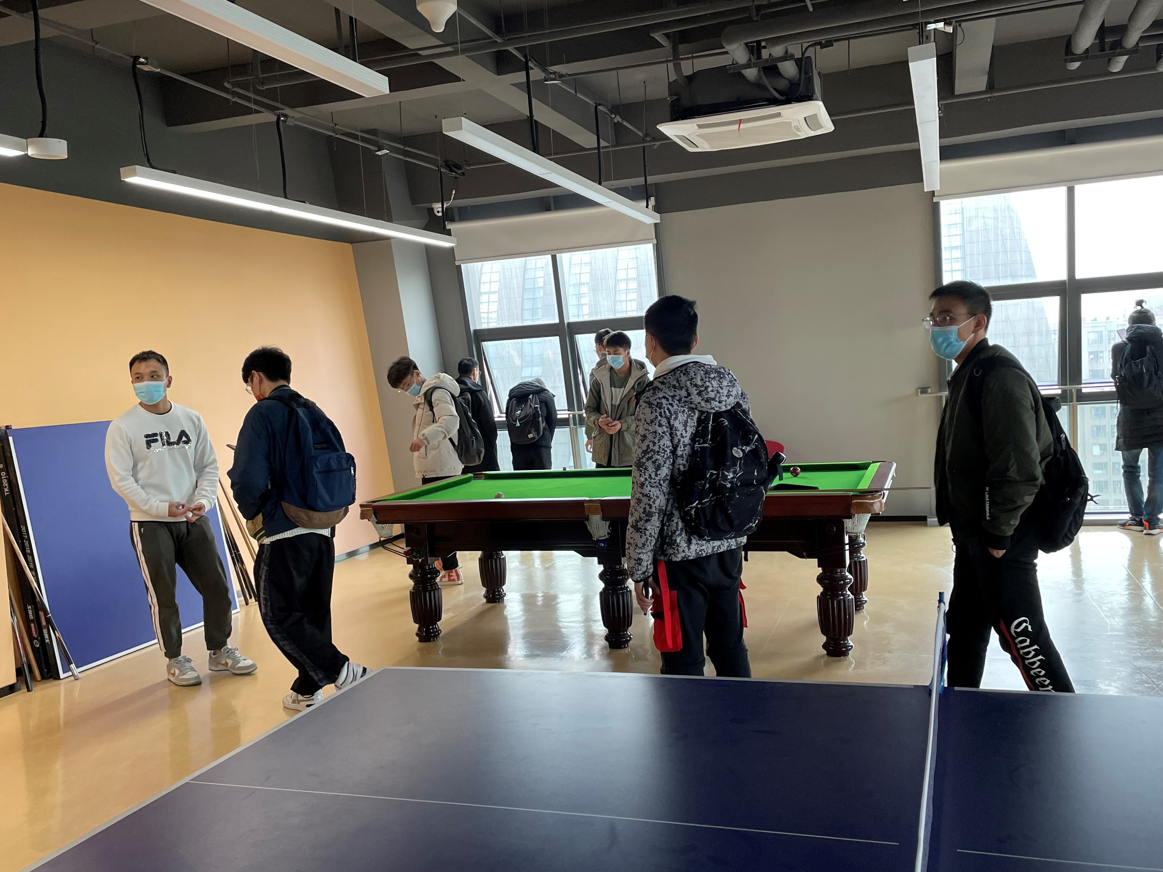初到汇顶科技大厦,同学们受到公司人力资源经理田宽老师的热情接待。知晓同学们对公司氛围和配套设施的好奇心,田经理带领着师生们直奔大厦顶层的健身房。该层是公司专为员工设计,拥有乒乓台、跑步机、瑜伽室、台球桌等健身器材,让员工能够充分锻炼与放松。随后,同学们来到公司员工食堂。食堂环境干净整洁,桌椅摆放井井有条,各类菜品五花八门。