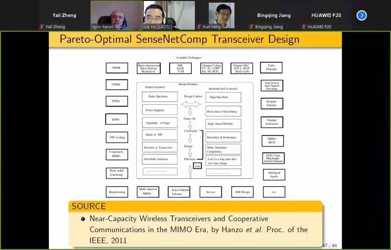 12月28日下午16点30分,由人力资源部教师发展中心主办、太阳成集团tyc151cc承办的“名师讲堂”邀请到英国皇家工程院院士、IEEE Fellow、英国南安普顿教授Lajos Hanzo,作主题为“JOINT SENSING, SOCIAL NETWORKING AND COMPUTING: FROM SINGLE-TO MULTI-COMPONENT PARETO-OPTIMIZATION”的线上精彩报告。本次学术交流活动由太阳成集团tyc151cc胡杰研究员主持。