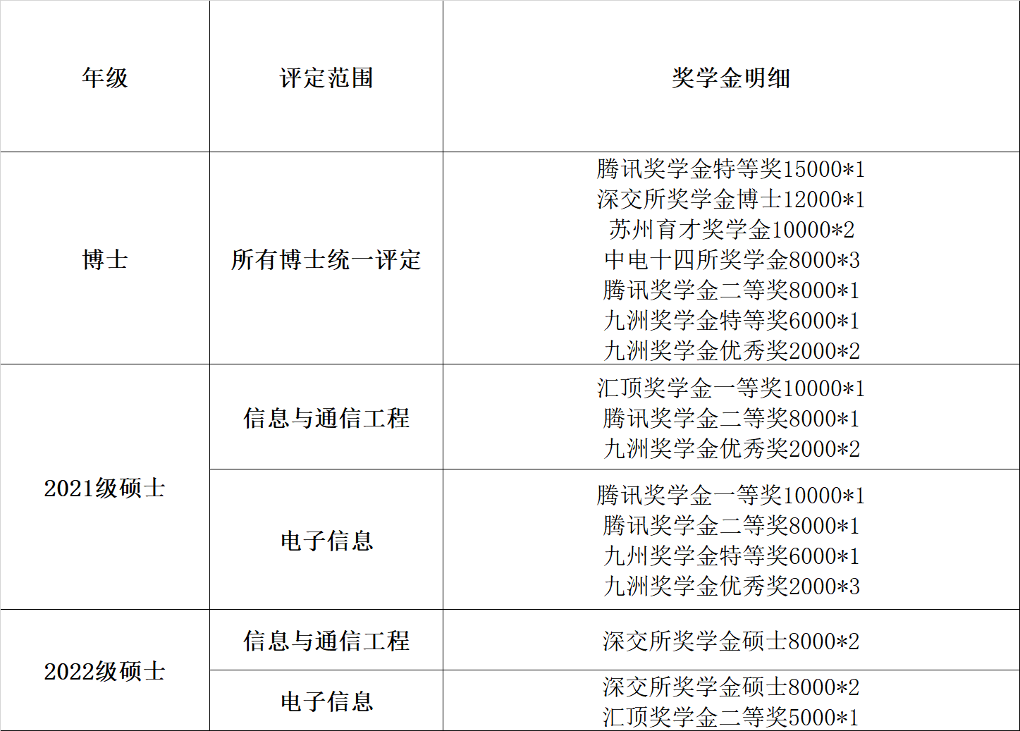 第二批专项奖学金包含腾讯奖学金、深交所奖学金、苏州育才奖学金、中电14所奖学金、汇顶科技奖学金、九洲奖学金。