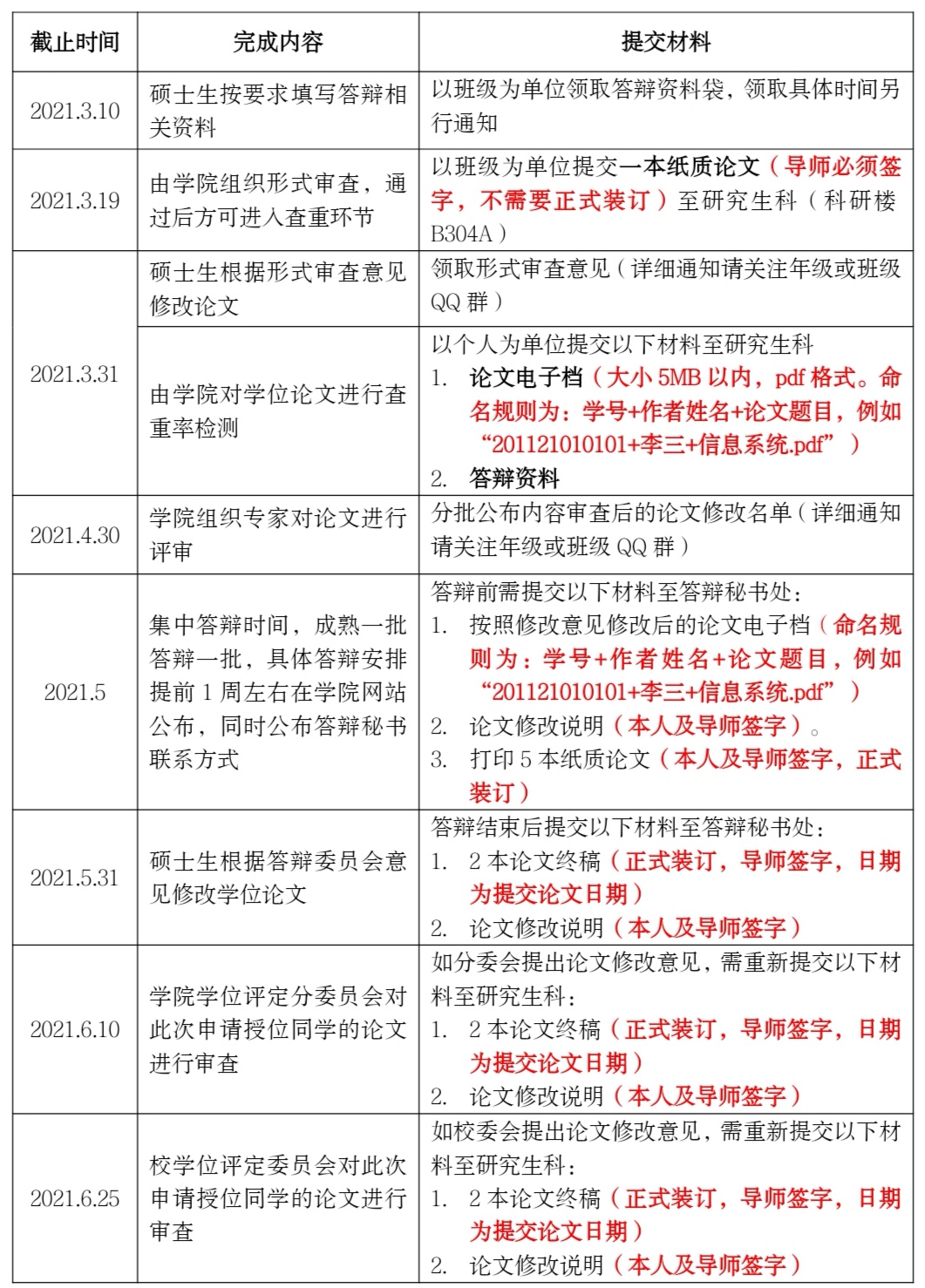 2021年3月19日前,以班级为单位提交一本纸质论文(导师必须签字,不需要正式装订)至研究生科(科研楼B304A)。