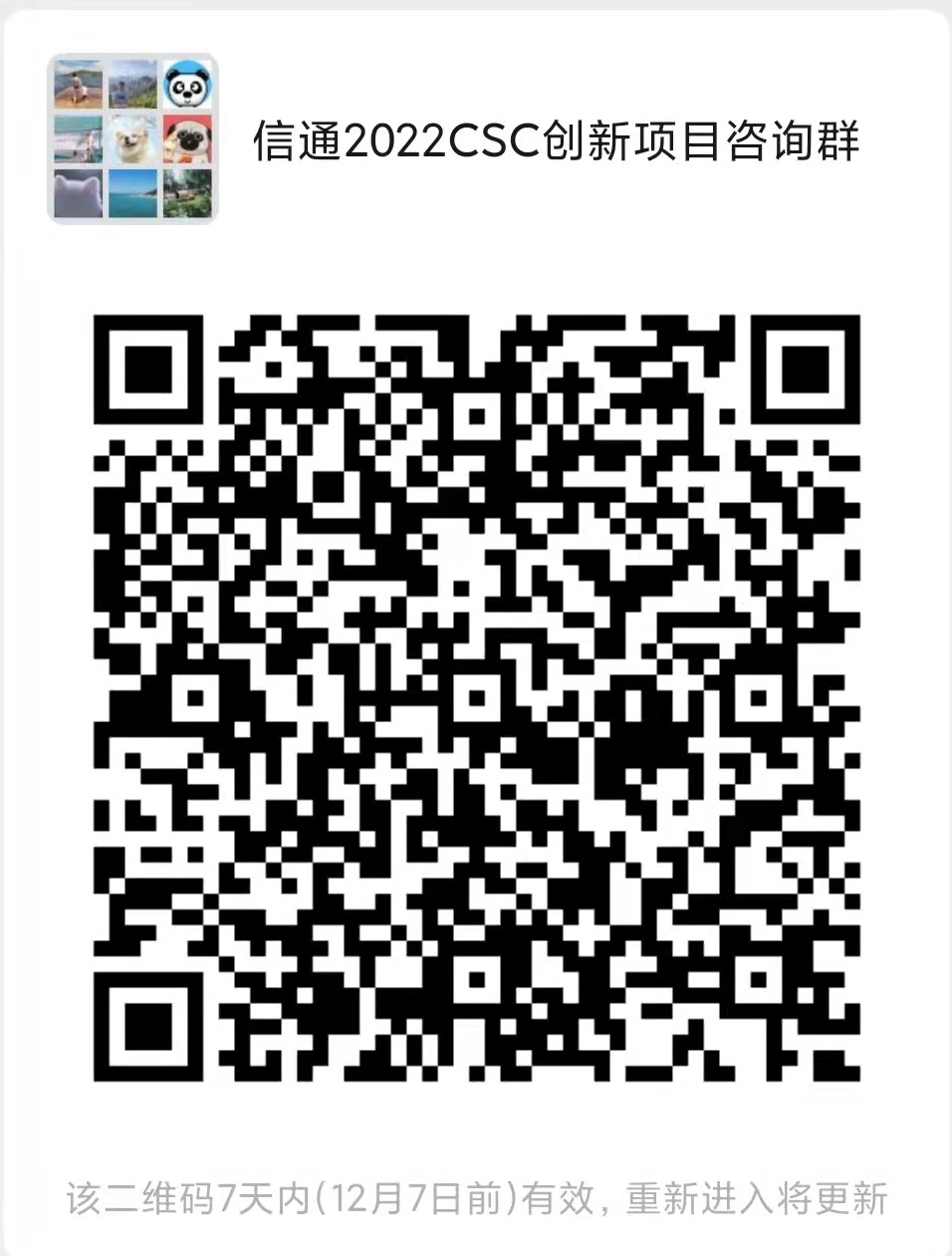 3. 有意申请的同学请加入2022太阳成集团tyc151ccCSC创新项目微信群: