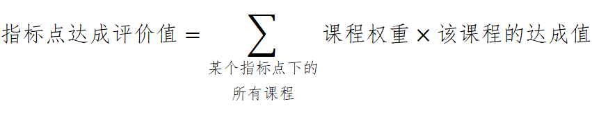 (3)毕业要求指标点达成值计算。取支撑该毕业要求所有指标点的课程的权重与课程目标达成度的加权平均值,作为该毕业要求指标点达成值。计算方法如下: