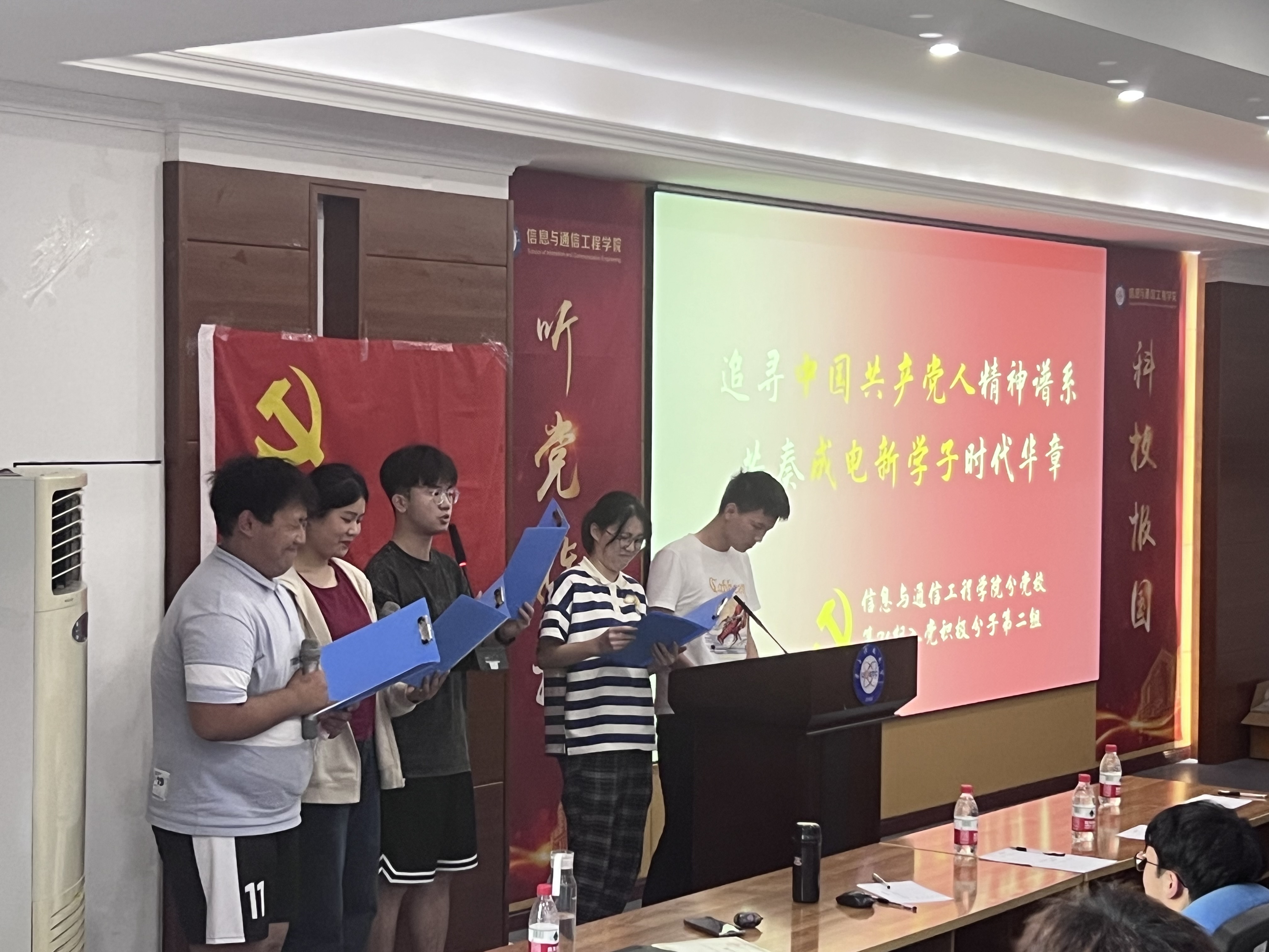 第二组围绕“追寻中国共产党人精神谱系,共凑成电新学子时代华章”主题,用朗诵的形式深情讲述了伟大建党精神、井冈山精神、遵义会议精神、抗美援朝精神、铁人精神、“两弹一星”精神、改革开放精神、女排精神、抗疫精神等,慷慨激昂,令人动容,深刻领会中国共产党精神谱系的丰富内涵。
