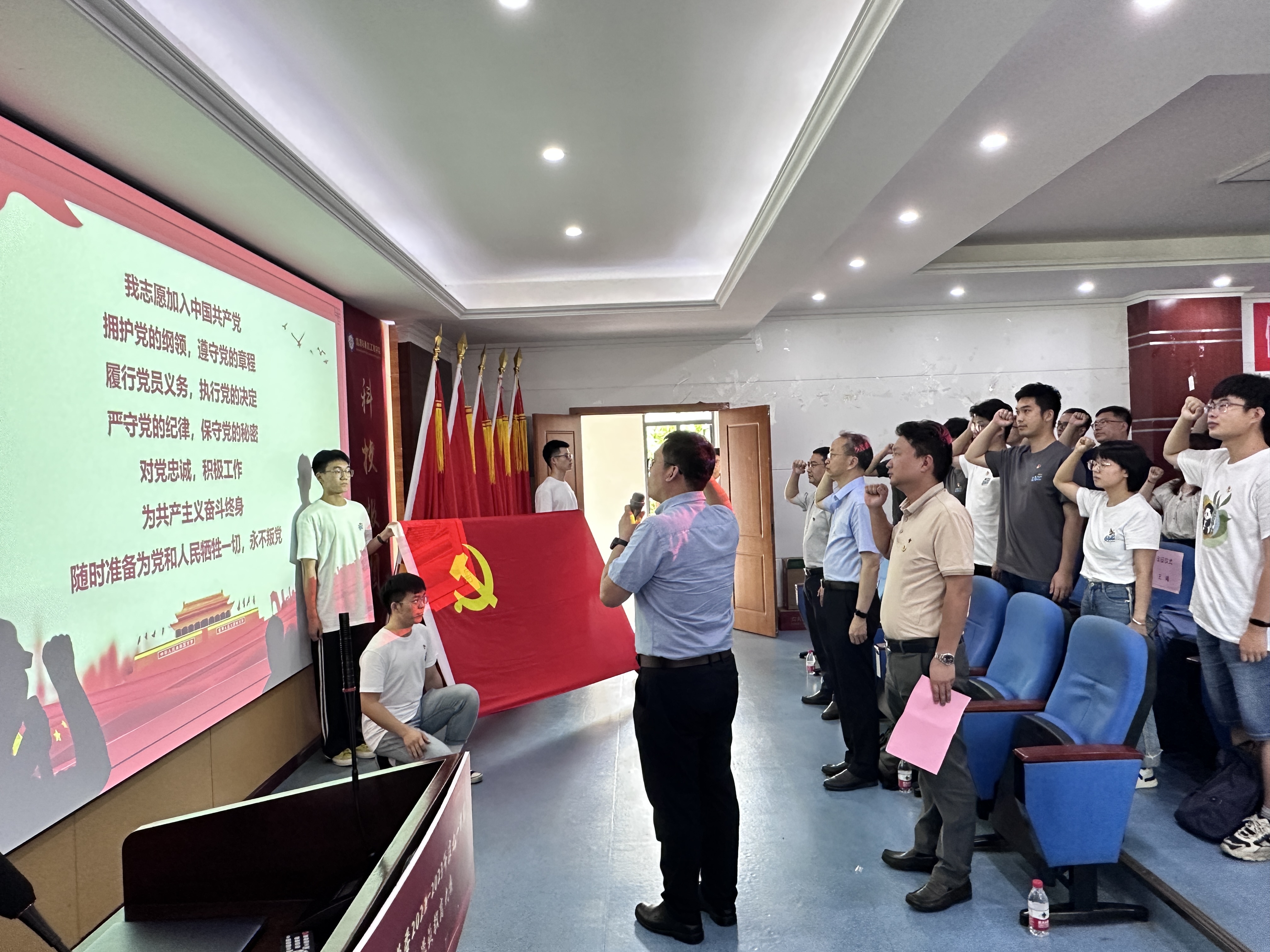 公司党委副书记何佳为新发展的党员代表颁发“政治生日”纪念卡;公司党委副书记耿宝莹带领全体党员重温入党誓词,进一步强化广大师生党员党的意识、党员意识。