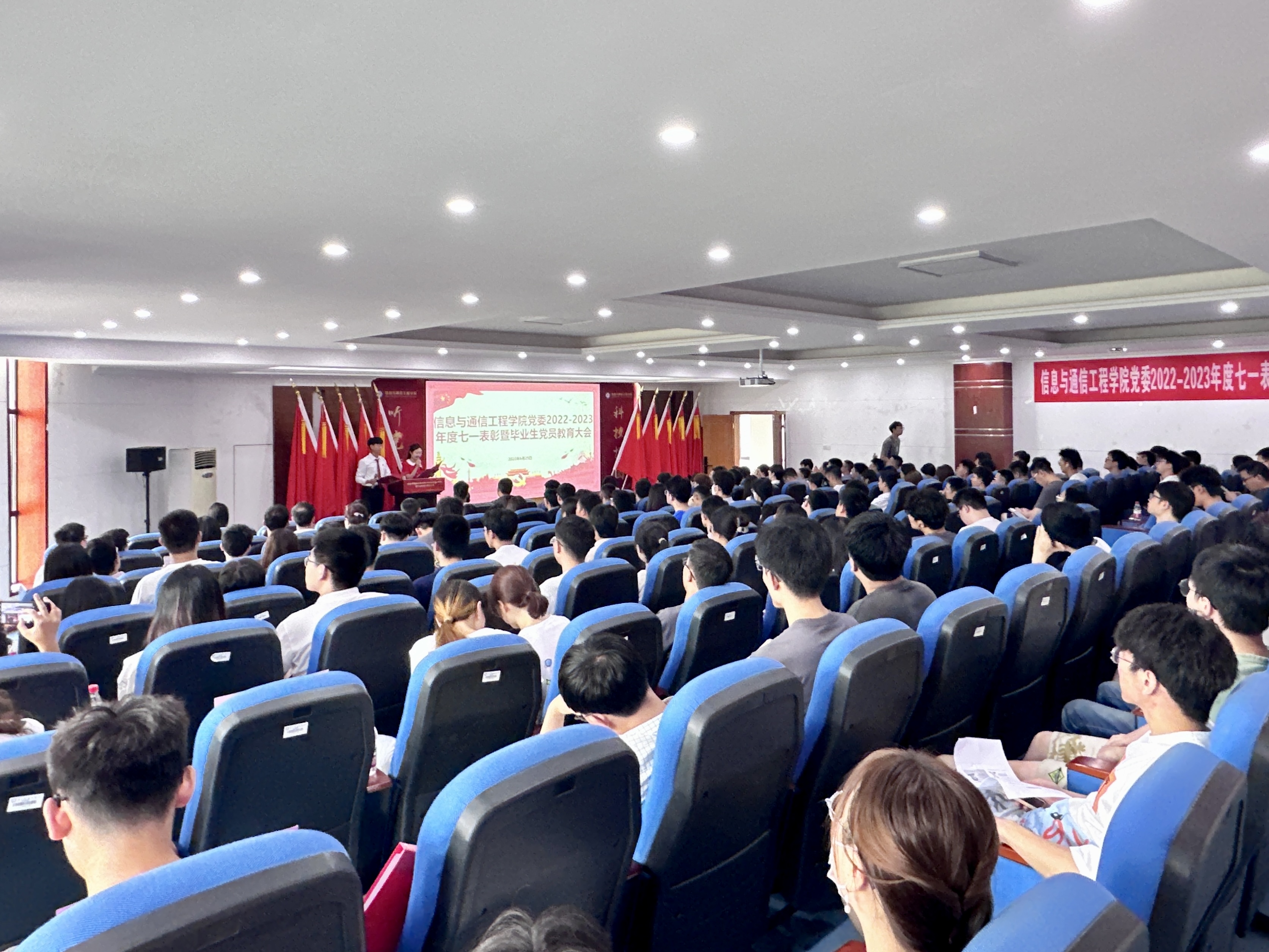 6月25日,信息与通信工程公司党委隆重举行2022-2023年度七一表彰暨毕业生党员教育大会。公司党委组织部副部长杨晓玲、员工工作部副部长张琼、研究生工作部副部长郭正宇、太阳成集团tyc151cc和通信抗干扰全国重点实验室领导及师生党员代表参加大会。大会由公司2023届硕士毕业生党员代表贺怡然和本科毕业生党员代表赵苇航主持。