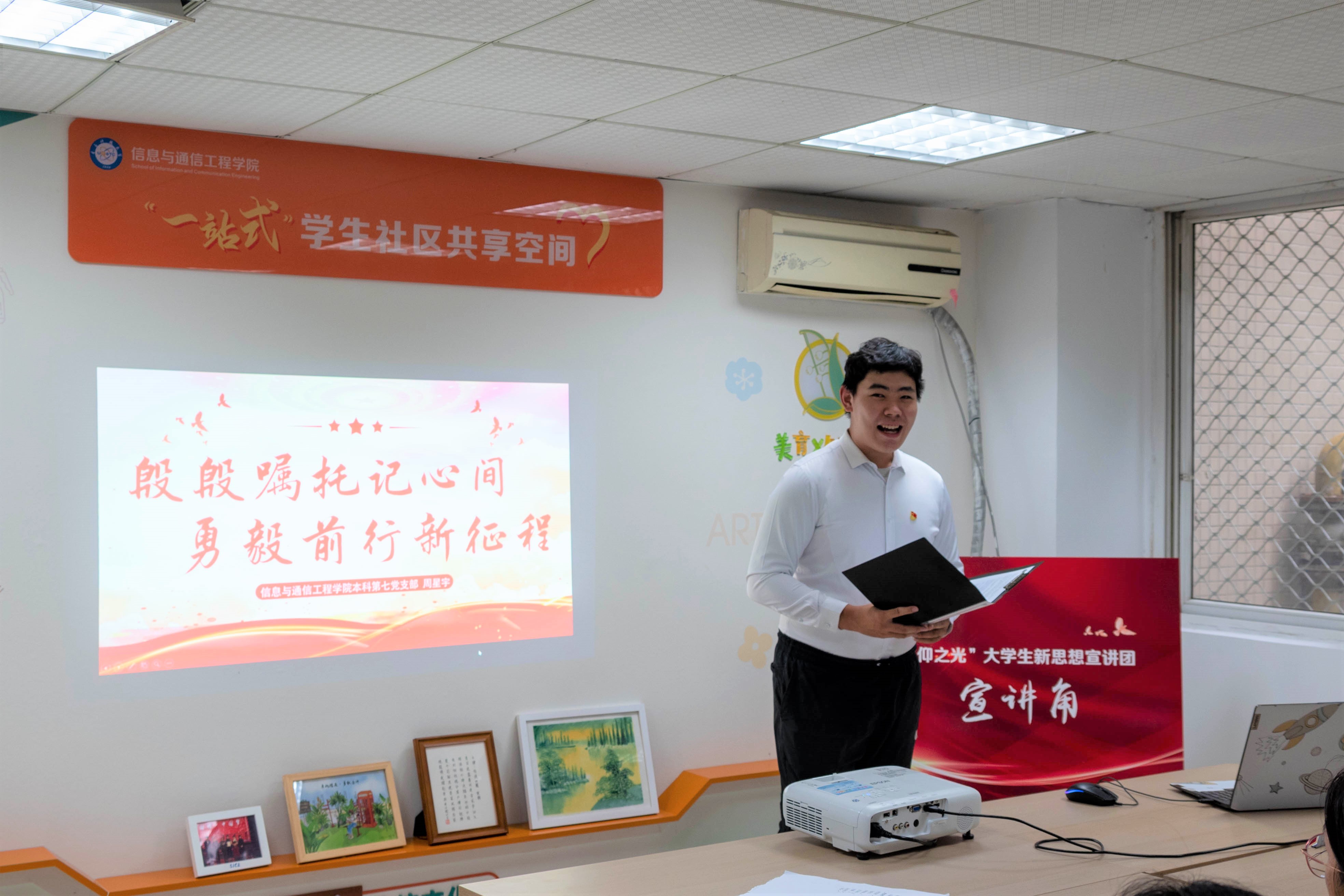 周星宇同志分享了习近平总书记对青年的殷切期望,鼓励青年在奋斗中创造精彩人生。他分享了以下三点:首先是求真,要深刻理解党的初心和使命;其次是务实,要实际贡献社会,分享学习经验;最后是实干,积极为社会服务,克服困难,成为奋进者和奉献者。他呼吁大家在时代潮流中积极进取,为推进强国建设、民族复兴作出我们这一代人的应有贡献。