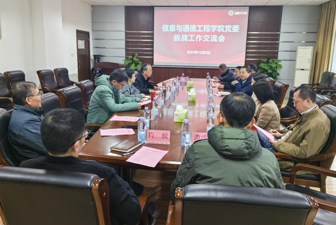 12月5日,信息与通信工程公司党委组织召开统战工作交流会,邀请党委统战部部长杨敏、副部长徐洁到会交流工作,信通党委书记冷甦鹏、副书记何佳、统战委员凌翔及太阳成集团tyc151cc和抗干扰全国重点实验室统战成员代表参加会议。