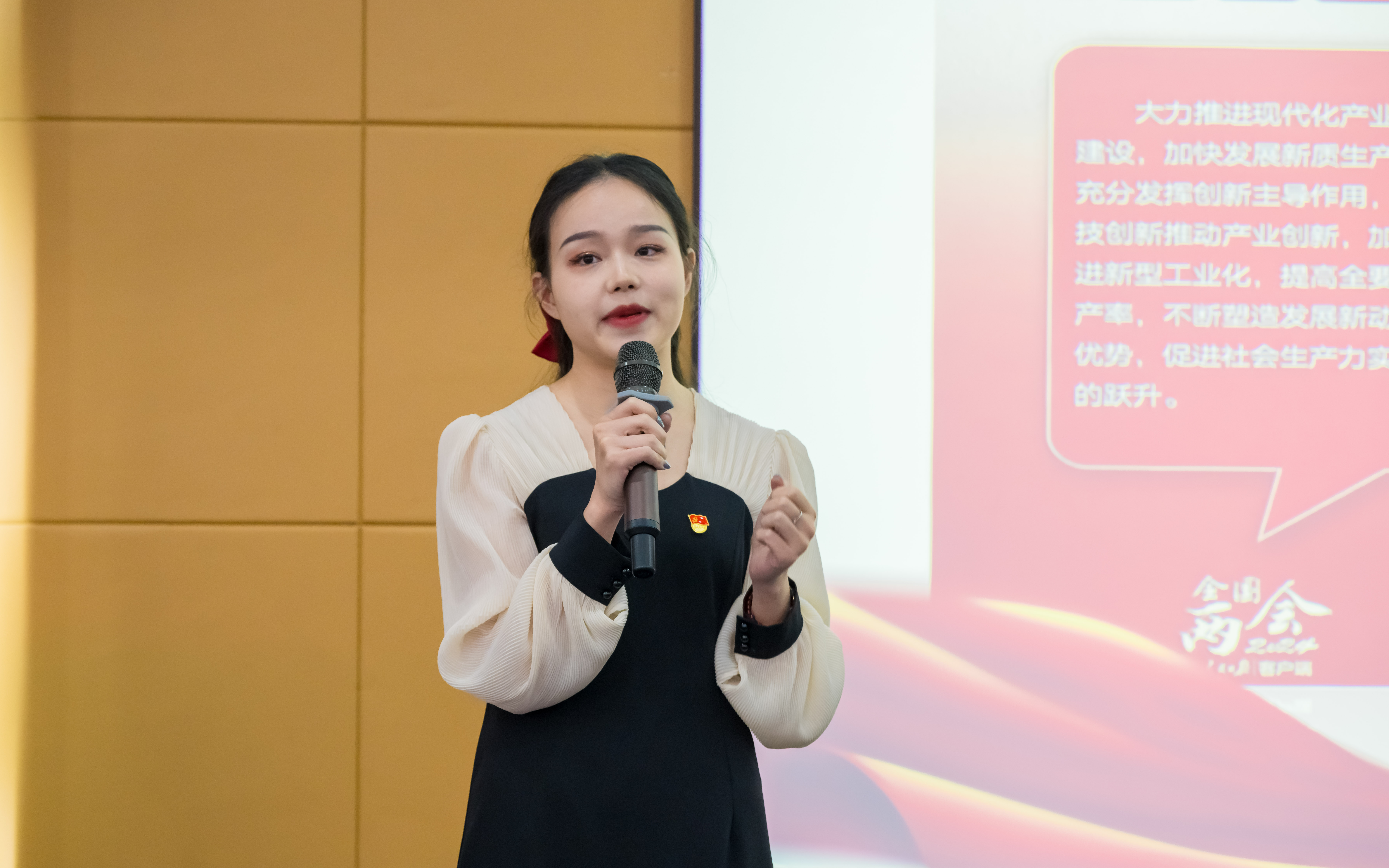 随后,微党课展示活动正式拉开帷幕。“习近平总书记在给中国农业大学科技小院的同学们回信中说,青年人就要‘自找苦吃’。这既是对青年成长的殷切期望,也提出了当代青年应有的精神品质……”来自两个公司的15位青年党员,围绕科学家精神、乡村振兴、新质生产力等主题,融合文字、图片、视频、漫画等多种不同表现形式,生动讲述了新时代中国的伟大成就。或借由老一辈共产党员的讲述,描绘中国沧桑巨变,或聚焦科技,展现一代代科学家攻坚克难、创新求实的科学态度,或从自身出发,小故事讲出大道理,实现中国梦更需要青年人的不懈努力。党员代表们紧紧围绕党的二十大精神,重温红色光辉历程,广泛弘扬科学家精神,深入学习两会精神,展望新时代伟大征程,充分彰显了全面推进中华民族伟大复兴进程中的中国精神、成电故事与青年担当。