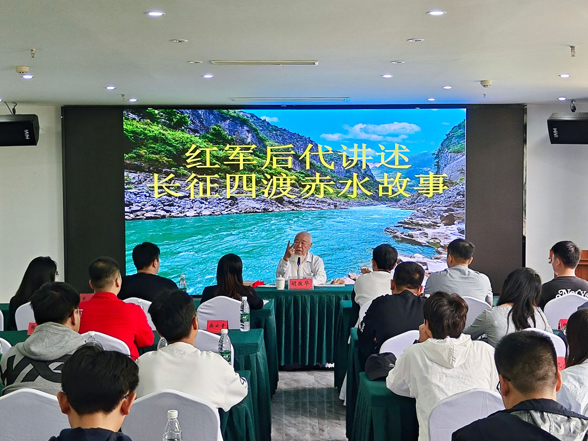 随后,由中国好人、四川省非遗赤水河船工号子传承人胡敬华向学员们作访谈教学。78岁高龄的胡老先生是井冈山红军后代,其父跟随红军从老家江西宁都辗转到四川古蔺,期间参加大小战斗十余场,在一场阻击战不幸被炮弹击伤,被迫成为“红军留在当地的伤员”,后来担任太平镇民兵队长,一直为党的事业做出贡献。胡老先生深情讲述了父辈投身革命、忠于革命的事迹,结合自身经历勉励青年党员们继承和弘扬长征精神,珍惜韶华,艰苦奋斗,为党和祖国伟大事业贡献力量。