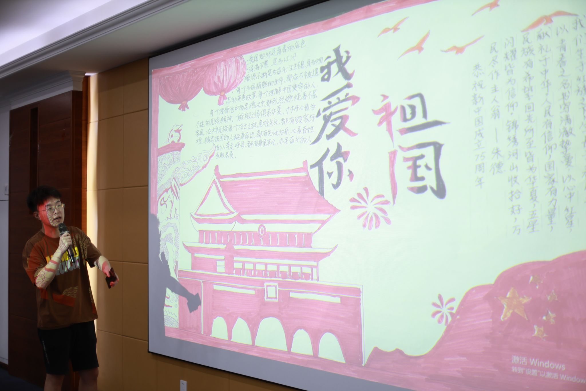随后进行手抄报展示,各小组发言人结合各自手抄报的特点,不仅表达了对新中国的赞美,也抒发了对中国共产党的崇敬。他们或以长城为笔,书写中国75年的筚路蓝缕,或借锦鲤雄鹰,表达新中国的强大,或融入公司特色,把“听党指挥 科技报国”的理念嵌入其中。同时借麦穗,天安门城楼,镰刀斧头等一系列意象,表达了同学们对新中国以及中国共产党光辉历程的深刻理解。