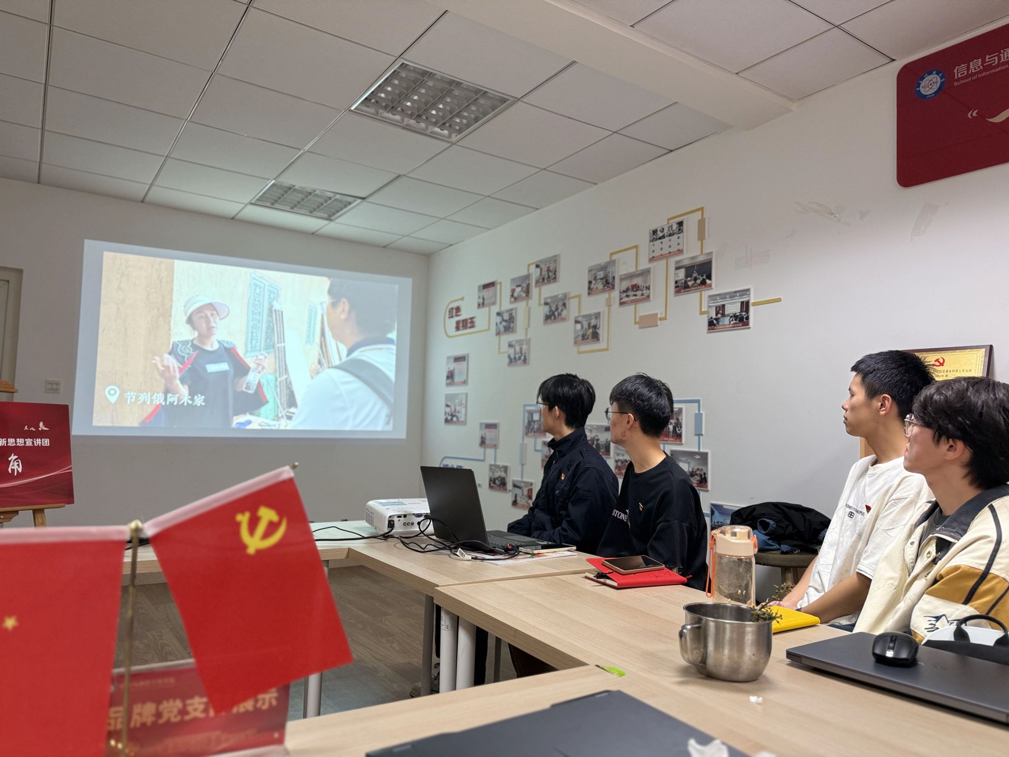 支部成员共同观看了宣讲团暑期实践活动总结视频。视频以宣讲团在大凉山的实践活动为主线,通过真实的画面和质朴的叙述回顾了团队在昭觉县、冕宁县的所见所闻与所思所感。视频中,宣讲团成员们与当地村民亲切交流,走进农户家中和产业园区,了解他们的生产生活状况,感受脱贫攻坚和乡村振兴给乡村和群众带来的巨大变化。