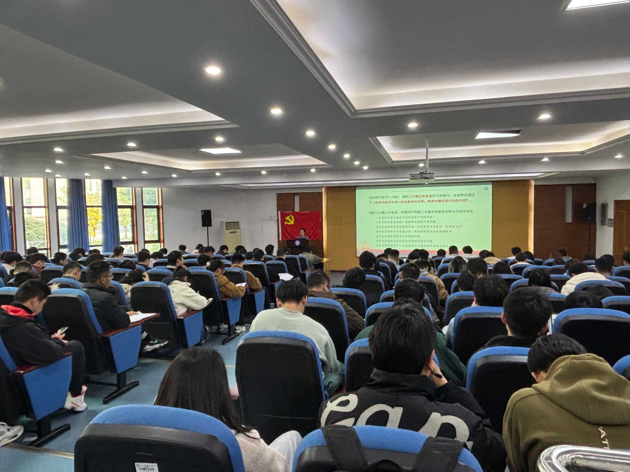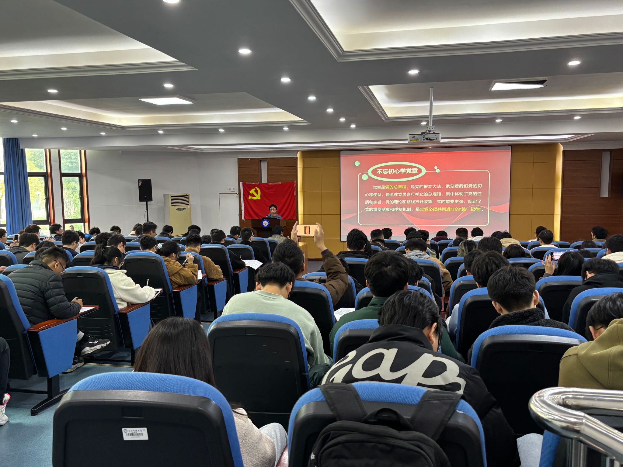 何佳首先向同学们介绍了入党的基本程序。接着以党的二十届三中全会为引,为同学们讲述了党章的地位和作用以及学习党章的必要性。何佳带领同学们从党章发展史看党的纪律建设史,分别从“一大”至“七大”党章、“八大”至“十一大”党章、“十二大”至“十八大”党章、“十九大”和“二十大”党章四个重要时期阐述党章内容和发展历程。