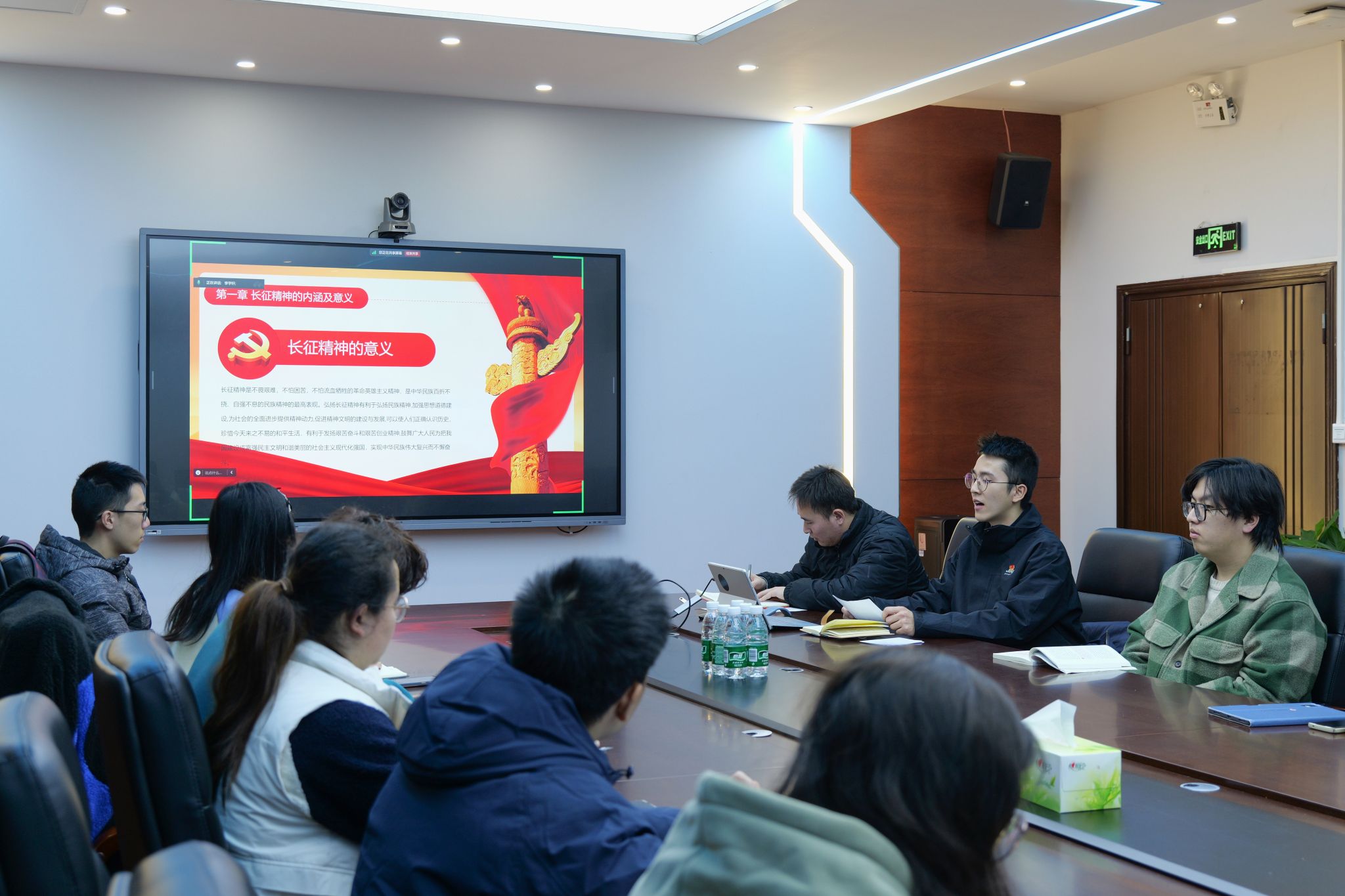 接下来,“信仰之光”新思想宣讲团成员、第七党支部党员邓创以伟大长征精神为主题,带领同学们“重走”长征路。他按红军长征的路线图和时间线,回顾途中的历次重大会议和关键战役,讲述了伟大长征精神的深刻内涵,并结合大家老员工的身份分析了应当如何继承发扬伟大长征精神,并呼吁与会同学树立大历史观的思维意识,自觉传承红色基因,赓续红色血脉。