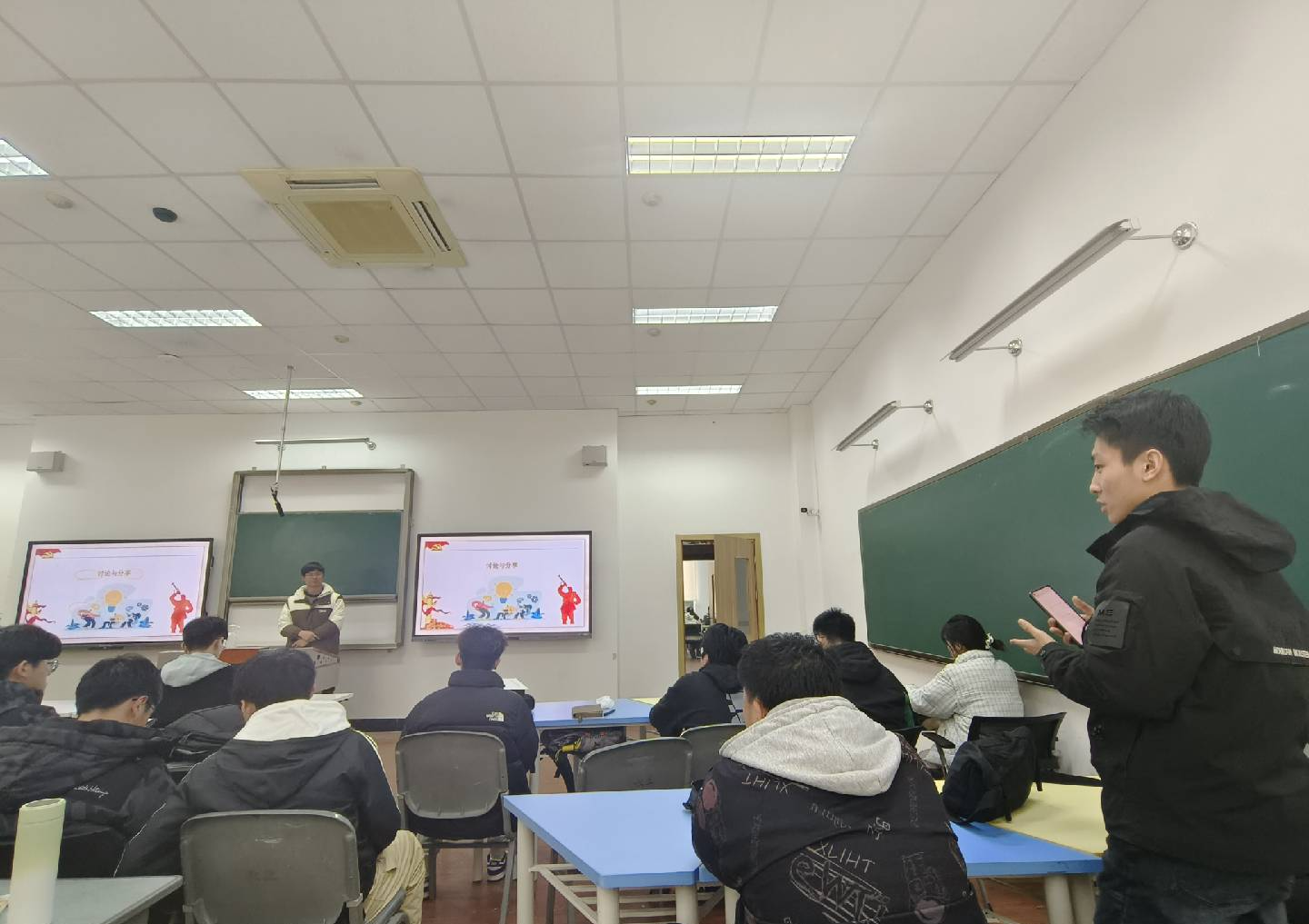在“心得交流讨论”板块中,主持人带领支部成员根据两会内容或热点提案议案进行了学习分享与交流讨论。支部成员结合自身生活实际,围绕两会精神展开了热烈讨论,分享自己理解、见闻与感悟。有支部成员从两会报告关于发展新质生产力的内容出发,分享了自己对人工智能技术现状的认识,号召大家努力学习专业知识,为我国人工智能产业的发展贡献自己的一份力量;也有支部成员从自己家乡的变化出发,说明了国家对基建和社会保障系统建设的重视,与政府工作报告中关于积极发展社会事业、增进民生福祉的内容遥相呼应。经过深入的研讨交流,党支部达成共识,要将两会精神融入日常工作与学习中,并结合自己的专业背景积极投身祖国的科技创新事业,这样才能不辜负青年党员的责任与使命。