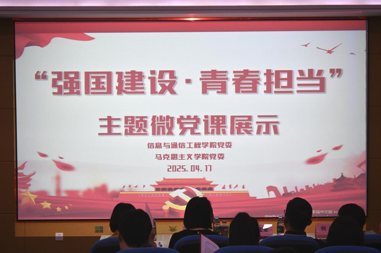 为深入学习贯彻党的二十大和二十届二中、三中全会精神,推动习近平新时代中国特色社会主义思想入脑入心,强化青年员工理论武装,提升理论宣讲能力,发挥员工党员的示范引领作用,4月17日,信息与通信工程公司党委联合马克思主义公司党委举办了“强国建设·青春担当”主题微党课展示活动,众多师生齐聚一堂,在微党课的学习交流中,感悟思想伟力,共话青春担当。