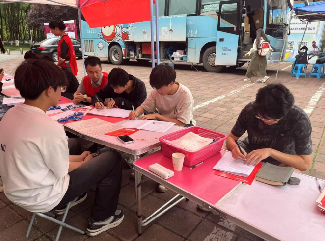 5月9日上午10点,采血车驶入清水河校区指定区域,活动正式拉开帷幕。在志愿者的引导下,前来献血的员工党员有序进行填表登记、体检初筛与血液采集。参与人员中,既有初次献血的“热血新兵”,也有多次捐献的“献血老将”,大家以实际行动践行新时代青年的责任与担当。