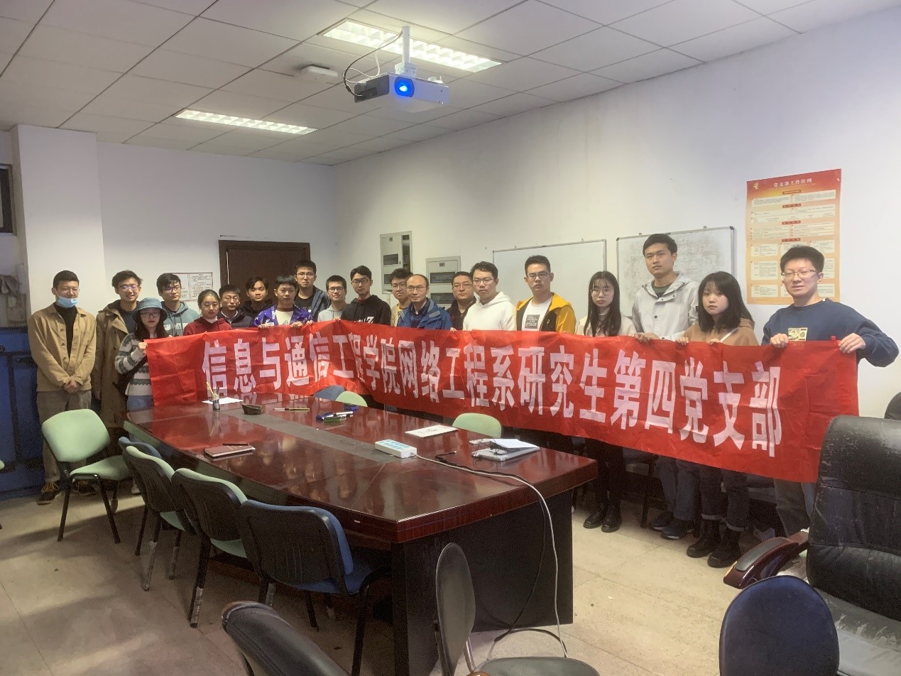 为深入学习贯彻习近平总书记关于“四史”学习的重要讲话和指示精神,进一步深化爱国主义教育,引导支部成员坚定理想信念、奋发有为、不忘初心使命,以实际行动迎接建党一百年,2020年11月21日,信息与通信工程工程公司网络工程系研究生第四党支部联合信息对抗教工党支部在科研楼B区316举行了主题是“学习‘四史’守初心,砥砺奋进担使命”的党日活动。会议由网络工程系研究生第四党支部书记薛擎宇主持,邀请支部对接教师、信息对抗教工党支部书记邵怀宗教授参加。