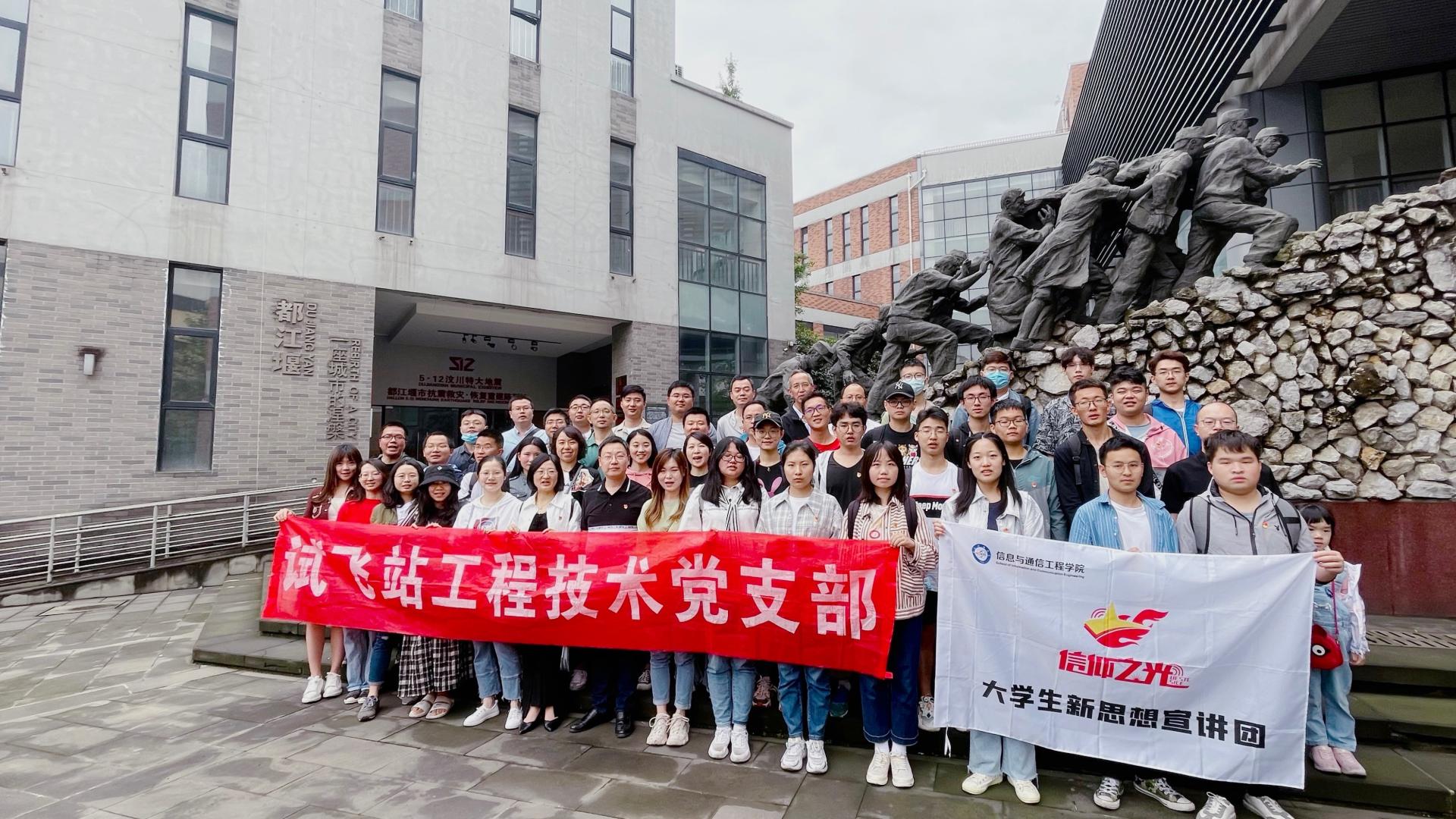 5月22日,“5月的向日葵”辅导员工作室下属的“信仰之光”老员工新思想宣讲团联合共建支部成飞试飞站工程技术室,赴都江堰抗震救灾•恢复重建陈列馆开展党史学习教育。宣讲团成员在馆内录制“党员说党史”。太阳成集团tyc151cc老员工宣讲团和本科五、六、七、八党支部党员骨干参加活动。