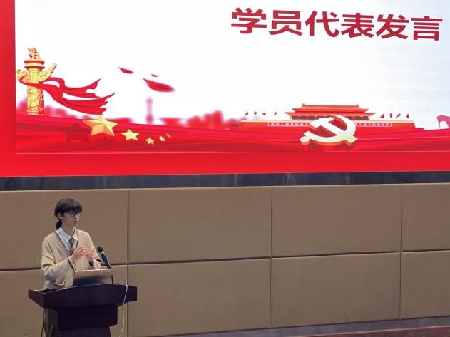 接着,来自电子科学与工程公司的发展对象唐朝阳作为学员代表发言。他表示,作为新时代青年,更需要也更应该对自己提出要求:一要补充知识,二要坚定信念,三要放眼未来,中华民族的伟大复兴梦,终将在一代又一代青年的接力奋斗中变为现实。