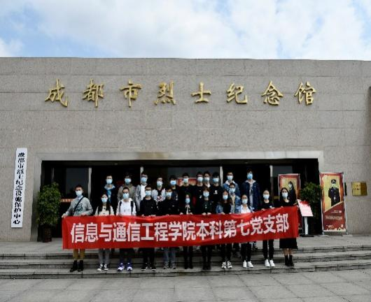 2021年4月3日上午,本科第七党支部党员前往成都市烈士陵园开展“清明祭英烈”活动,缅怀英烈,致敬英雄。同学们先是在赫然挺立的浮雕纪念墙前,向革命烈士默哀、鞠躬、敬献鲜花。随后走进烈士纪念馆,听讲解员讲述革命烈士的英雄事迹。馆内展出着革命烈士英名录、烈士遗物等,大家驻足参观,无一不为之动容。经过这堂生动的党史课,同学们纷纷表示,要把对英雄的哀思和敬仰化作不断向前的动力,继承先烈遗志,不忘初心,牢记使命,怀爱国奉献之心,立科技报国之志,用青春谱写新时代奋斗之歌,以优异的成绩迎接建党100周年。
