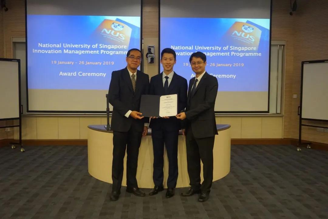张浩天在新加坡国立大学作为优秀营员接受结业证书