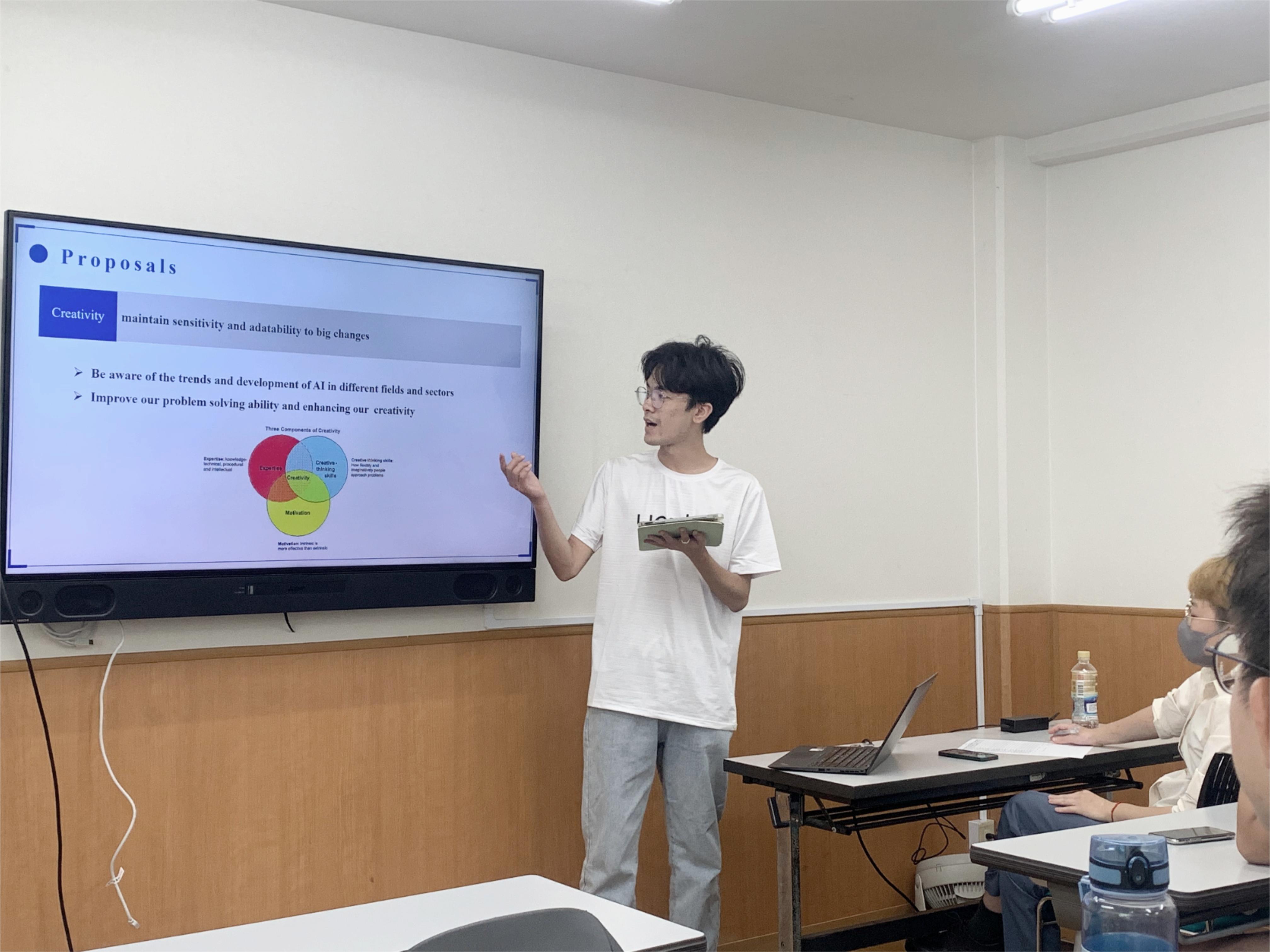 汪上策利用假期时间参加海外交流项目,培养自己的国际视野。2023年夏,汪上策作为营员参与“成电思源马克巴-启梦计划”第四期暑假日本早稻田大学交流营,第一次踏上了走出国门的旅途。无论是在早大校园里听教授们关于企业发展、空气动力学等领域的讲解介绍,还是在参观当地科技博物馆、著名城市地标等的所感所闻,都充分拓宽了他的视野与格局,深化了他对世界多元化的理解与认知。在课程设计中,他与队友们一同研究探讨人工智能时代下就业环境的发展变化趋势,最终获评优秀团队并获得董事长推荐信。具备全球化视野的青年,相信将在国际竞争日益激烈的当下中拥有更大的发展空间和宝贵的发展机会,也将在未来成为国家发展的栋梁之材。