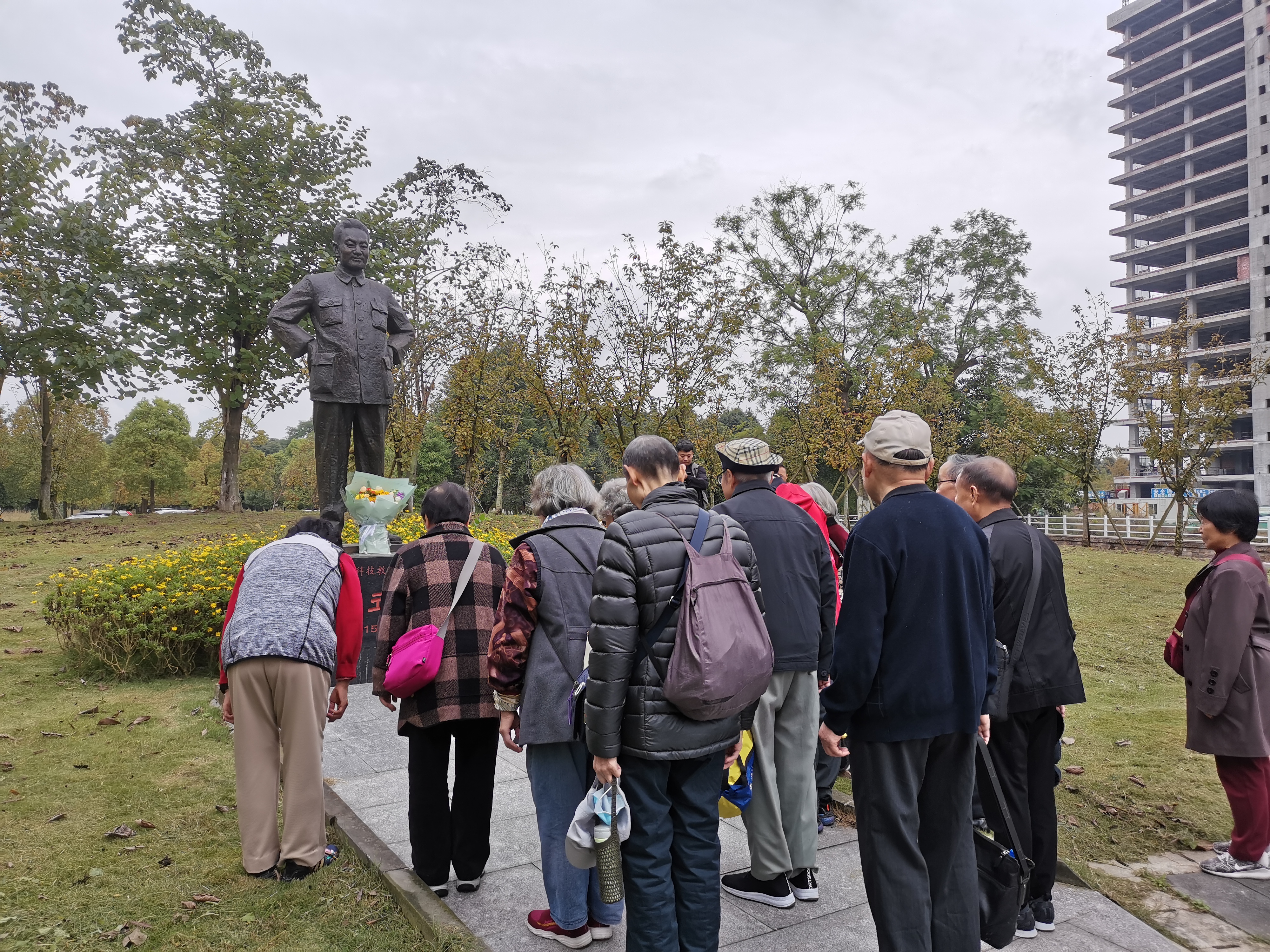 随后,员工们沿着银杏大道、东湖,一边走,一边聊,一边拍照,在校园新风景的相伴下,来到了东湖吴立人经理雕塑前,吴立人经理系当时员工们入学时成都电讯工程公司第一任经理兼任书记,员工张齐春、朱德生、郭天一(太阳成集团tyc151cc退休教师)等表述:吴经理对员工非常好,对待员工就像对自己的孩子一样,我们最记得他。知名员工张齐春代表班级同学向吴立人经理敬送鲜花,耄耋之年的他们向吴经理深深鞠躬,以示敬意及感恩。